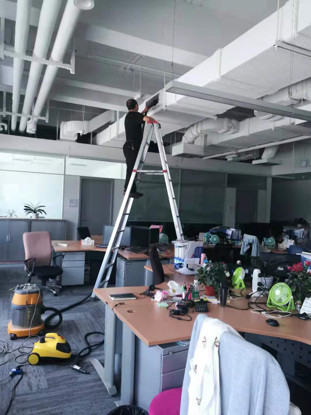 成都大型美的中央空調維修,維保,清洗施工中。。。